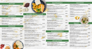 F: Vyprážaný syr + hranolky + tatárska omáčka = 7,50 €
